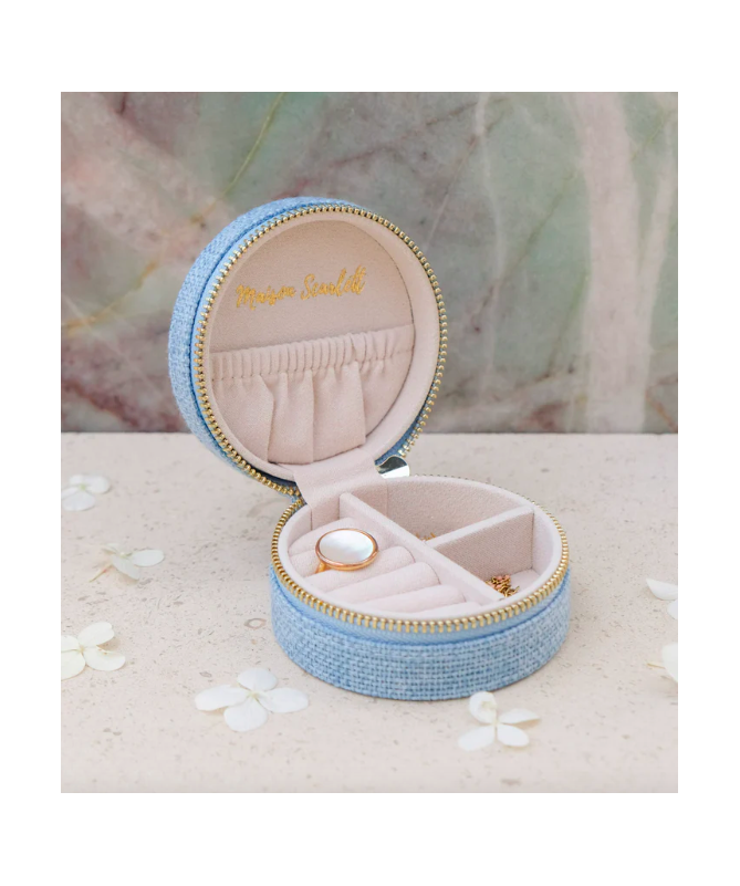 Boite à bijoux S ronde lin bleu - Maison Scarlett