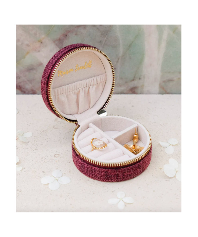Boite à bijoux S ronde lin bordeaux - Maison Scarlett