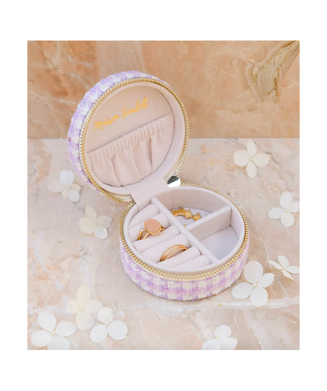 Boite à bijoux S ronde pieds de poule mauve - Maison Scarlett