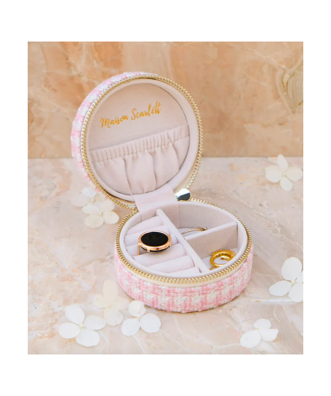 Boite à bijoux S ronde pieds de poule rose - Maison Scarlett
