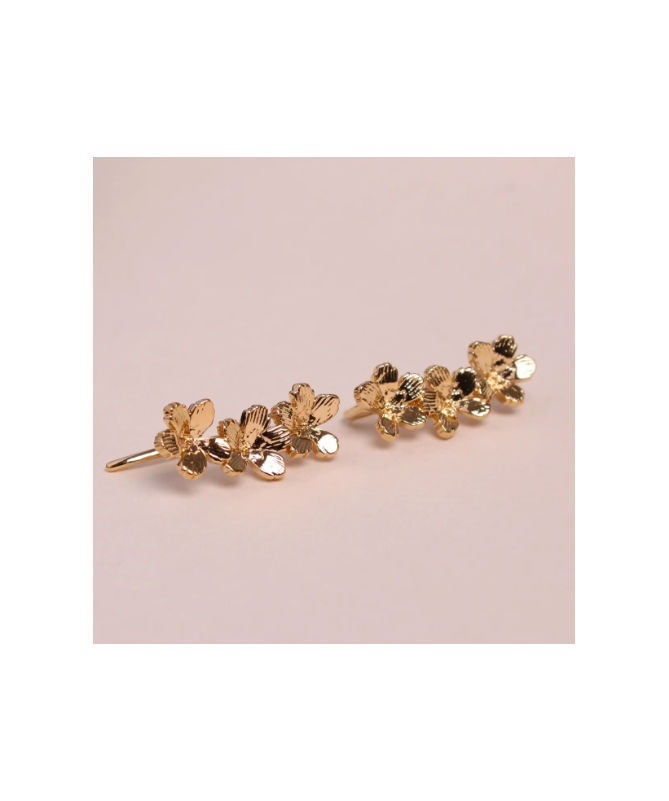 Une paire de contours d'oreilles fleuris en plaqué or 3 microns.