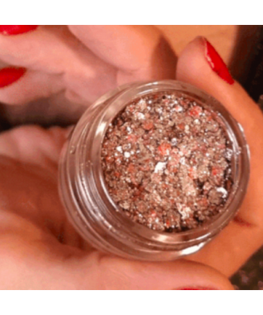Utilisation : Prélevez les paillettes à l'aide de votre doigt et appliquez-les sur le visage, corps ou cheveux !