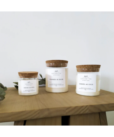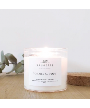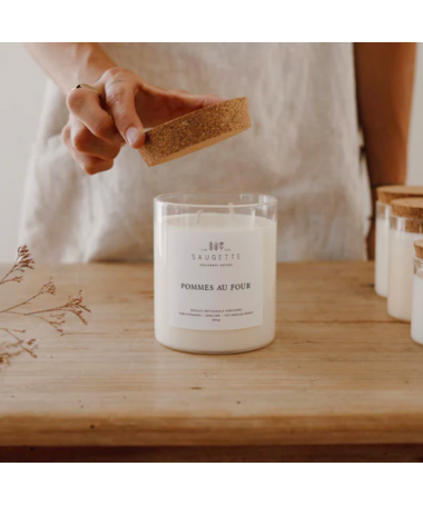 Pomme au four - Bougie artisanale parfumée à la cire de soja naturelle, sans OGM.