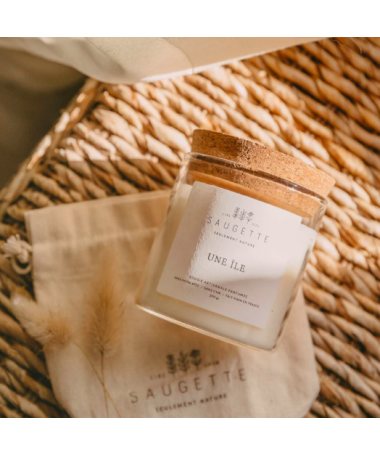 Bougie artisanale parfumée à la cire de soja naturelle, sans OGM.
