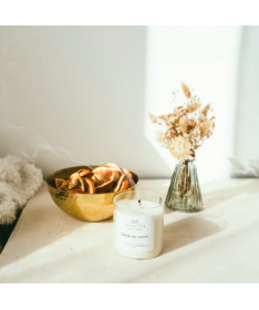 Bougie artisanale parfumée à la cire de soja naturelle, sans OGM.