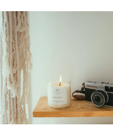 Bougie artisanale parfumée à la cire de soja naturelle, sans OGM.