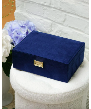 Boîte à bijoux L Velours Bleu Marine - Maison Scarlett