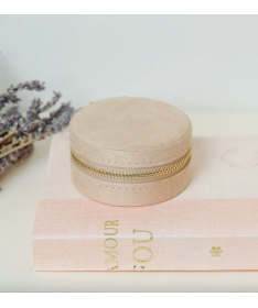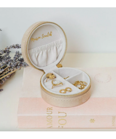 Boîte à bijoux S ronde velours Beige - Maison Scarlett