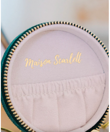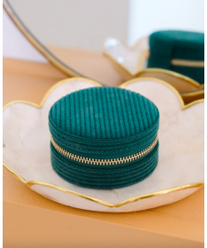 Boîte à bijoux S ronde en velours côtelé Vert - Maison Scarlett
