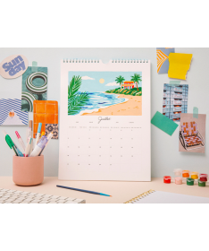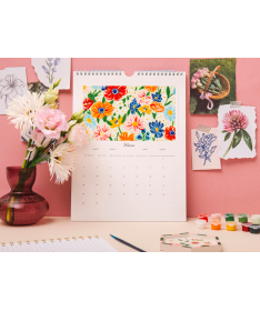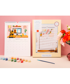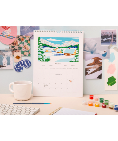Calendrier mural illustré - chaque mois découvrez un nouveau paysage ou une nature morte inspirée de la saison. Une fois les 12 oeuvres terminées il vous suffit de les relier grâce à la spirale incluse pour créer un véritable calendrier mural fait main, à suspendre chez vous.