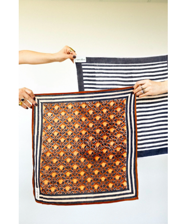 Confectionnée artisanalement en Inde, ses couleur sont réalisées à partir de pigments naturels. Cette confection manuelle peut entrainer de légères variations de couleurs d'un série à l'autre et quelques "irrégularités" qui lui donne son charme.