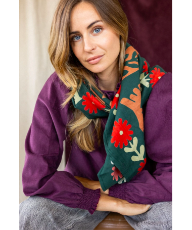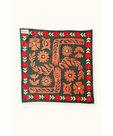 Confectionnée artisanalement en Inde, ses couleur sont réalisées à partir de pigments naturels. Cette confection manuelle peut entrainer de légères variations de couleurs d'un série à l'autre et quelques "irrégularités" qui lui donne son charme.
