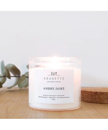 Ambre doré - Bougie artisanale parfumée à la cire de soja naturelle, sans OGM.
