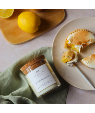 Citron Meringué - Bougie artisanale parfumée à la cire de soja naturelle, sans OGM.