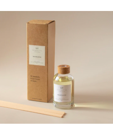 Flacon de parfum de 200ml et 8 roseaux en fibre naturelle.