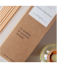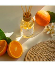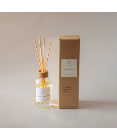 Flacon de parfum de 200ml et 8 roseaux en fibre naturelle.