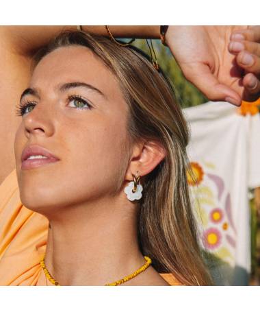Boucles d'oreilles Fleur, Les Nicolettes, des fleurs lumineuses qui mêlent fraicheur et éclat. Coloris : Ivoire.