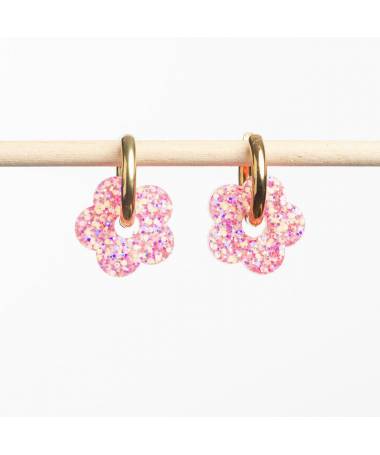 Boucles d'oreilles Fleur, Les Nicolettes, des fleurs lumineuses qui mêlent fraicheur et éclat. Coloris : Mix Rose.