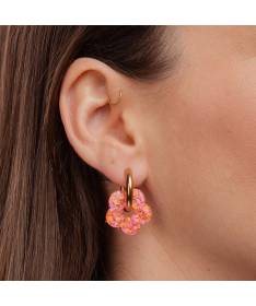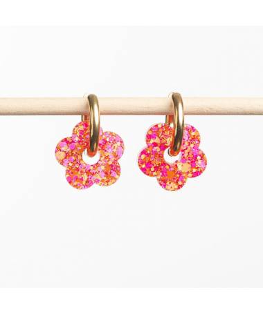 Boucles d'oreilles Fleur, Les Nicolettes, des fleurs lumineuses qui mêlent fraicheur et éclat. Coloris : Fuchsia Orange.