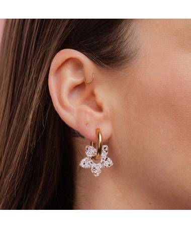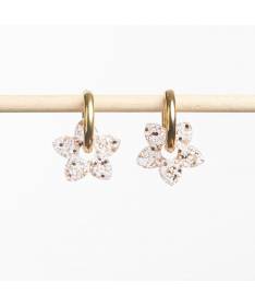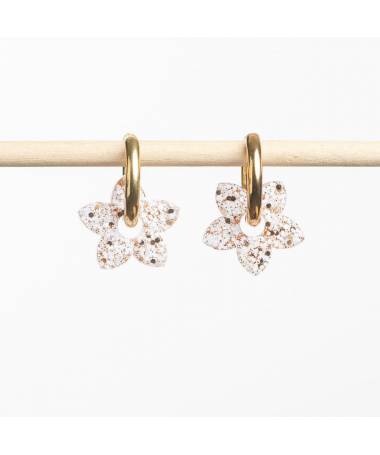 Boucles d'oreilles Tiaré, Les Nicolettes, des fleurs lumineuses qui mêlent fraicheur et éclat. Coloris : Ivoire & Champagne.