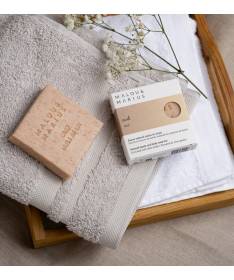 Enrichi au beurre de karité, huile de lin et graines de karité, nourrit et exfolie la peau en douceur.