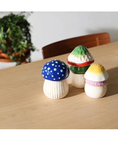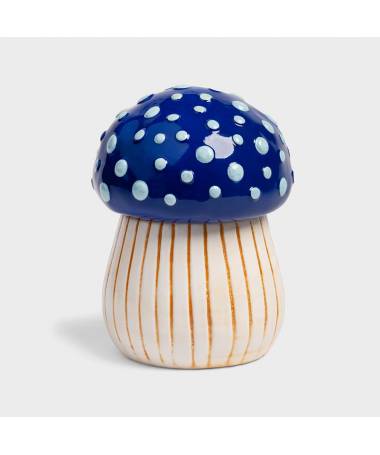 Petit récipient en forme de champignon, idéal pour cacher des bonbons.