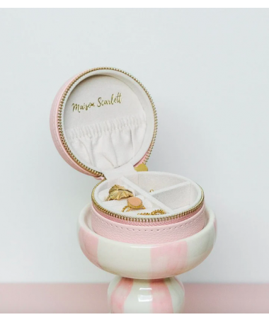 Boîte à bijoux S ronde en cuir Rose - Maison Scarlett