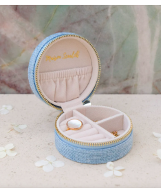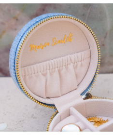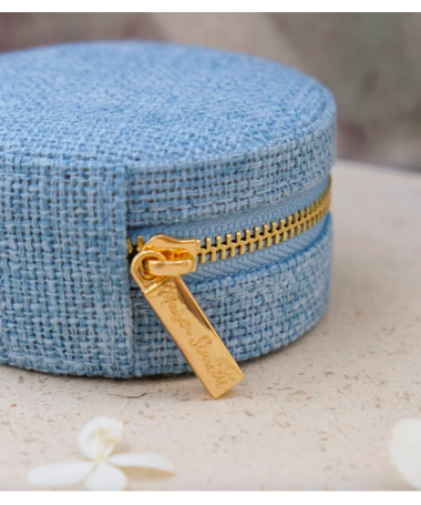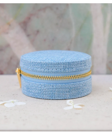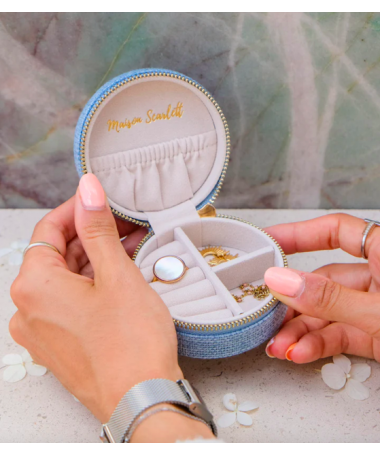 Boîte à bijoux S ronde lin bleu - Maison Scarlett