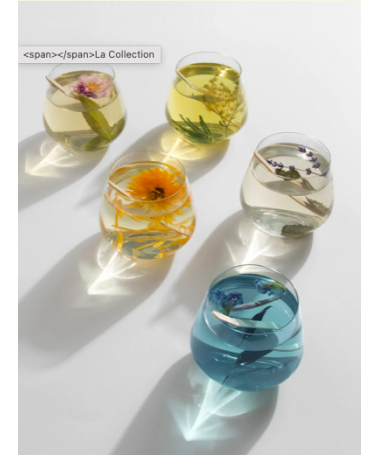 Discrète en goût la mauve colore l'eau d'un bleu éclatant lorsque la menthe l'accompagne par sa fraicheur
