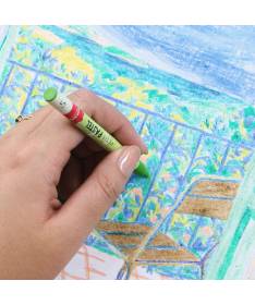 Cette illustration représente une vue sur la mer, baignée de lumière et de calme. Le pastel aux numéros permet de créer facilement une scène apaisante, au rendu doux et lumineux.
