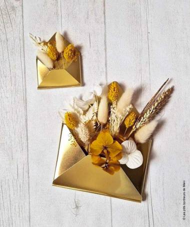 Enveloppe en laiton à accrocher facilement au mur à l'aide d'une petite pointe pour présenter vos fleurs séchées, cartes, photos.