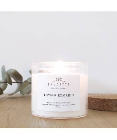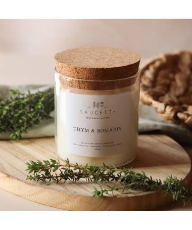 Thym et romarin - Bougie artisanale parfumée à la cire de soja naturelle, sans OGM.
