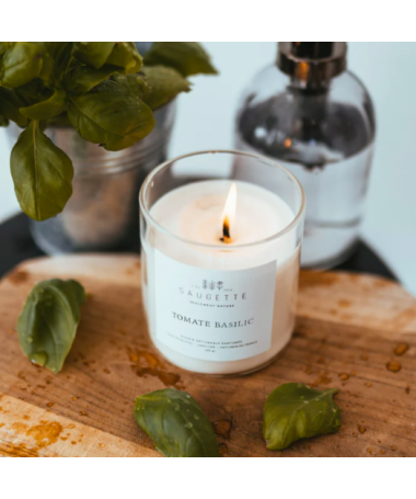Bougie artisanale parfumée à la cire de soja naturelle, sans OGM.