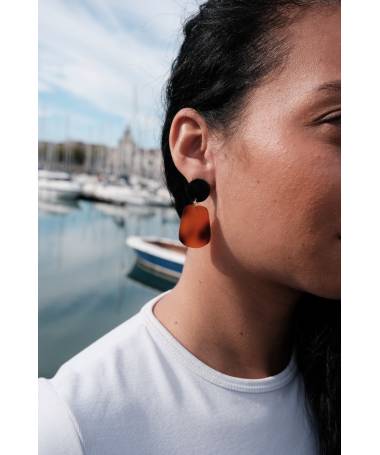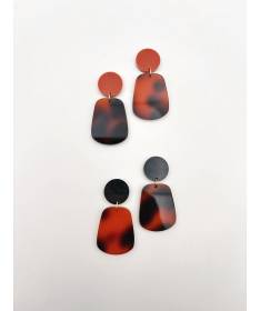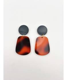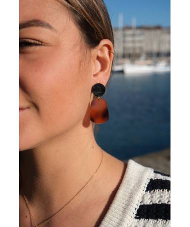 Boucles d'oreilles pendantes coloris Noir et motif écaille de tortue