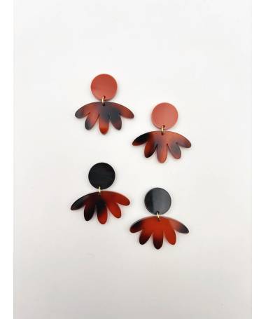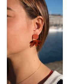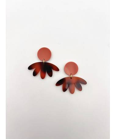 Boucles d'oreilles pendantes coloris terracotta et écaille de tortue