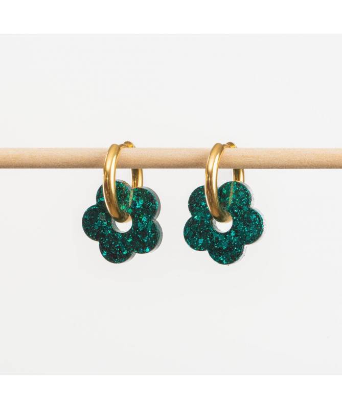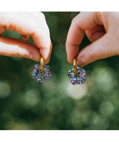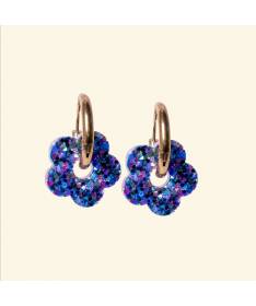 Boucles d'oreilles Fleur, Les Nicolettes, des fleurs lumineuses qui mêlent fraicheur et éclat. Coloris : Bleu violet.