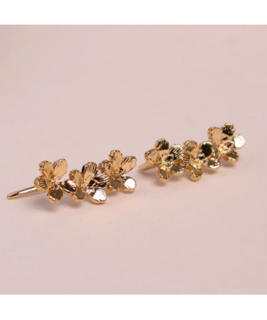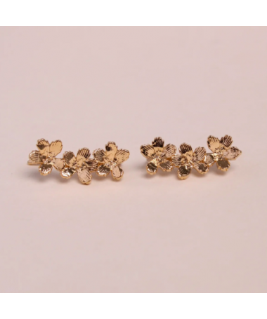 Une paire de contours d'oreilles fleuris en plaqué or 3 microns.