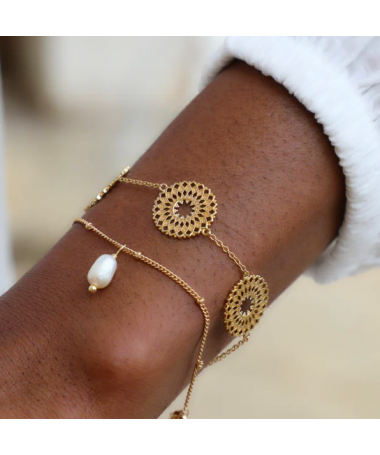 Bracelet composé d'une chaine forçat dorée avec un détail bille et d'une jolie perle d'eau douce blanche.