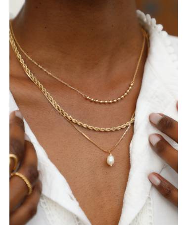 Un collier chaine classique avec des petites billes rondes s'accorde avec tout !