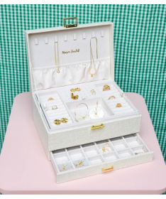 Boîte à bijoux avec tiroir en Lin Beige - Maison Scarlett